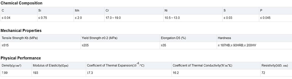 305 stainless steel is a common austenitic stainless steel containing chromium, nickel, and manganese. Chromium can combine with oxygen to form a dense oxide film to protect materials from corrosion. Nickel can improve the material’s heat resistance and toughness while reducing its magnetism. Manganese can increase the strength and hardness of materials.