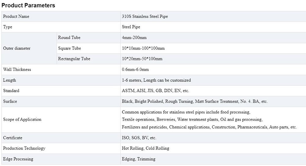 310S Stainless Steel Pipe Description