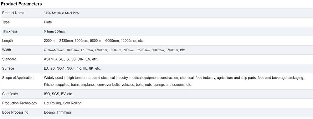 310S stainless steel is austenitic chromium-nickel stainless steel, with good oxidation resistance, corrosion resistance, because of a higher percentage of chromium and nickel, so that it has much better creep strength, can continue to work at high temperatures, with good high temperature resistance.