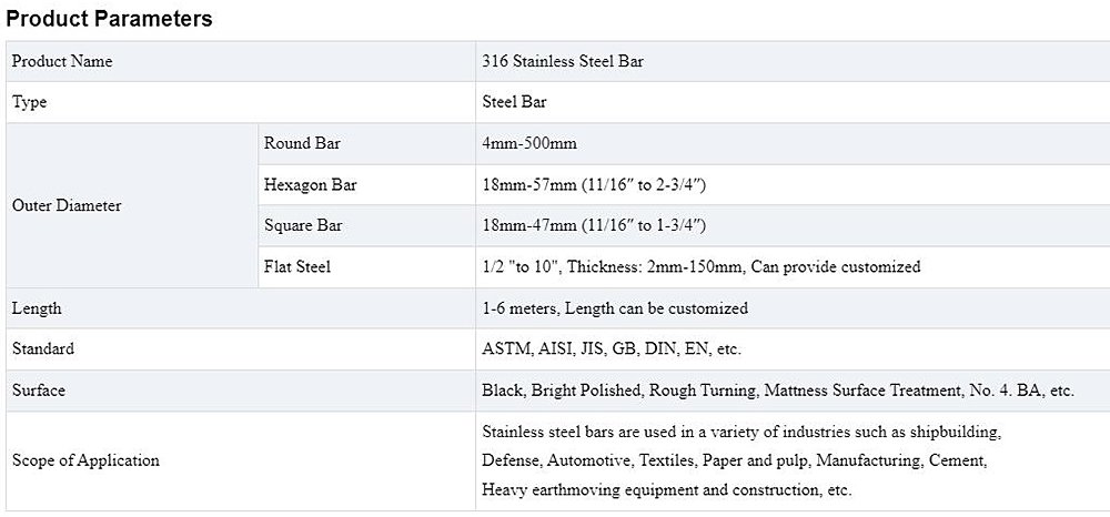 316 stainless steel bar has a number of convincing reasons to be used as a very practical option. Grade 316 is highly resistant to pitting and crevice corrosion in chloride environments as a standard molybdenum-bearing austenitic grade. So it is more commonly used in situations where higher corrosion resistance is asked. For example, in marine engineering, 316 stainless steel is often used to produce ship parts, subsea pipelines, offshore platforms and other facilities. Chemical industry is also where it is adopted. In addition, in the medical field, 316 stainless steel bars are sometimes used to manufacture medical devices and implants due to its excellent biocompatibility and corrosion resistance.
