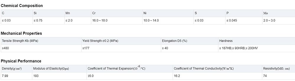 316 stainless steel has extra 2-3% molybdenum, in addition to iron, chromium and nickel. Molybdenum significantly leads to better performance of 316 stainless steel in certain corrosive environments containing chlorides. So it is a very common choice in situations requiring higher corrosion resistance.