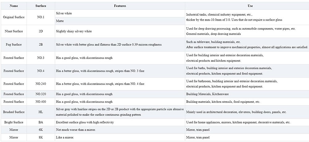 Stainless steel plates can be divided into austenitic stainless steel, ferritic stainless steel, martensitic stainless steel, duplex stainless steel, etc. The most common ones are 201, 201L,301,304,304L,316,316L,409 etc