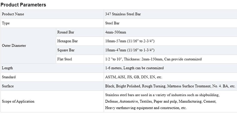 347 Stainless Steel Bar Description