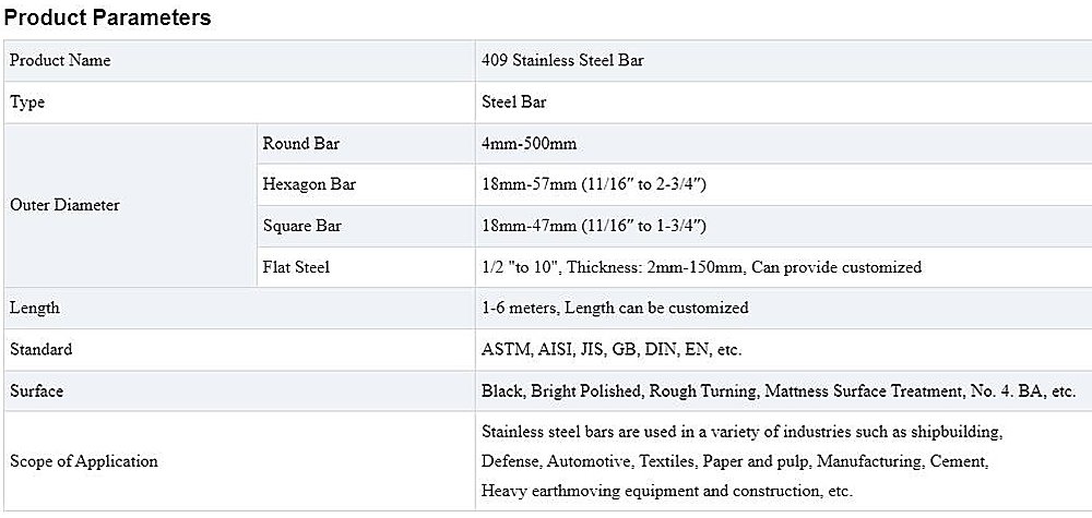 409 Stainless Steel Bar Description
