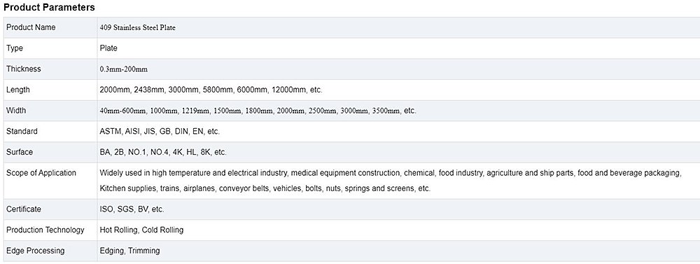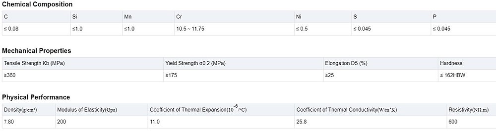 409 stainless steel is a ferritic steel with good mechanical properties and high temperature corrosion resistance. It contains 11% chromium, which is the minimum amount required to form the passive surface film that makes stainless steel corrosion-resistant.