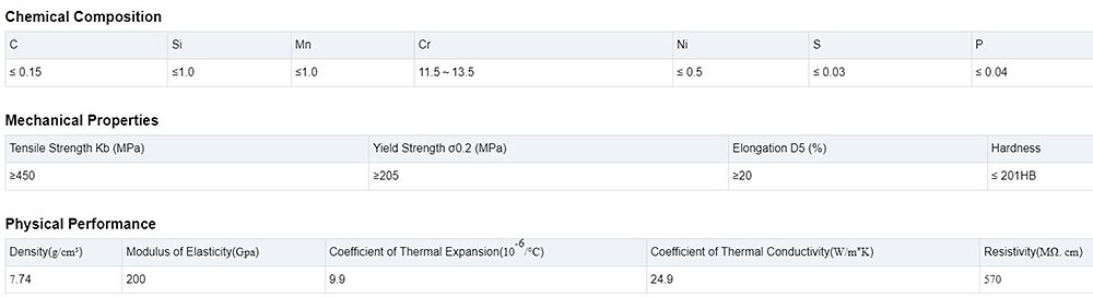 410 stainless steel is a commonly used martensitic stainless steel whose main components are iron, carbon, chromium and a small amount of other elements.