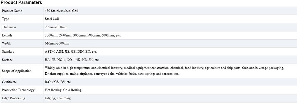 430 stainless steel coil has one key property, which is its ability to resist oxidation and rust in humid or mildly corrosive environments. It has at least 16% chromium, which makes for an invisible protective layer on the surface to prevent rust. Another advantage is its resistance to high temperatures (up to 1500°F) while not losing strength or becoming brittle. Good ductility and formability make it easy to be shaped into different products. 430 stainless steel is frequently used in aerospace engineering, medical device manufacturing, petrochemical processing plants, and marine applications such as marine fittings. However, welding 430 stainless steel can be challenging due to its high chromium content. Be sure to clean them thoroughly with a wire brush to remove any discoloration caused by heat exposure during the welding process.