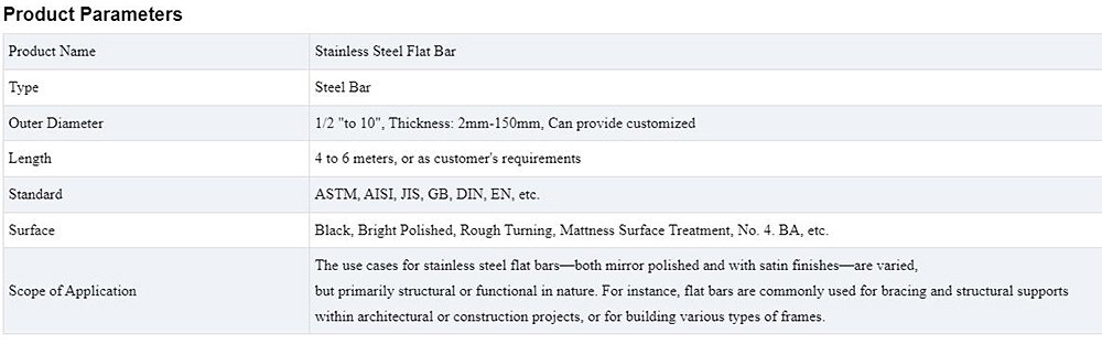 Stainless steel flat bar is a common use case for polished stainless steel, typically 304 stainless steel. Flat bars are used for various structural supports and functional elements, including braces, trim, frames, and more.