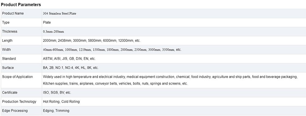 304 stainless steel plate is one of the most popular steel plates across the globe for a mix of its favorable characteristics. 304 stainless steel is mainly composed of iron, chromium and nickel. This combination leads to outstanding oxidation resistance and corrosion resistance of 304 stainless steel plates. 304 stainless steel is a versatile stainless steel material with stronger anti-rust properties than 200 series stainless steel materials. It is also better in terms of high temperature resistance. The 304 stainless steel plate has a smooth surface, high plasticity, toughness and mechanical strength, and is resistant to corrosion by acids, alkaline gases, solutions and other media. Due to its good versatility and relatively low cost, 304 stainless steel plate is widely used in food processing equipment, building materials, automobile parts and other fields.