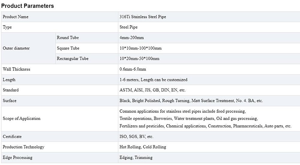 316Ti Stainless Steel Pipe Description
