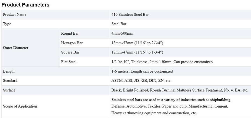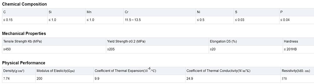 410 stainless steel is a commonly used martensitic stainless steel consisting of iron, carbon, chromium and a small amount of other elements.